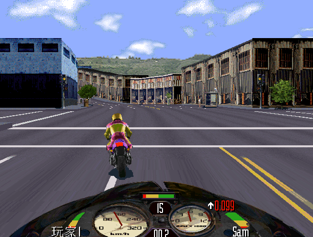 比赛进行期间,按 V 键可查看游戏版本,按 F10 为切换/显示/隐藏摩托车的仪表面板;小键盘的“+ -”键为改变游戏背景的贴图颜色。