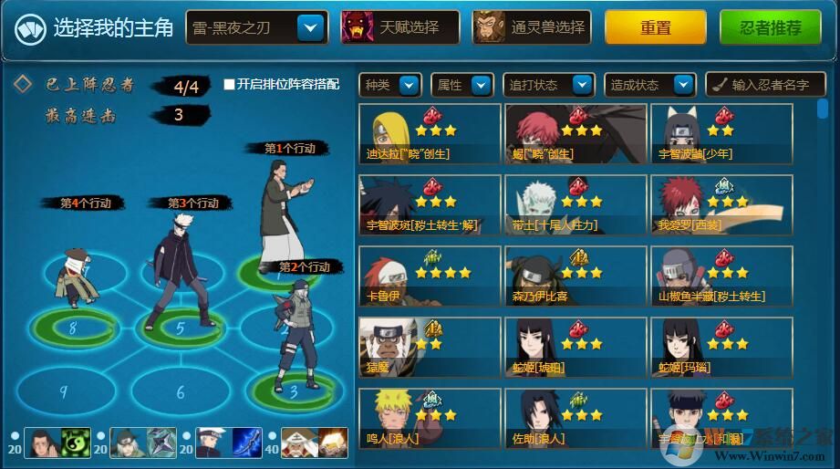 排位战中除了快攻型阵容搭配,保守型阵容搭配也是比较受欢迎的。这种阵型是将忍者集中放置在四个站位上,例如2356的站位。下方两横排都有两名忍者,这样的搭配在实力占据优势的情况下,能抗住敌人的各种冲击,同时忍者站位比较密集,也能进行很好的反击,让对手找不到下口的机会。
