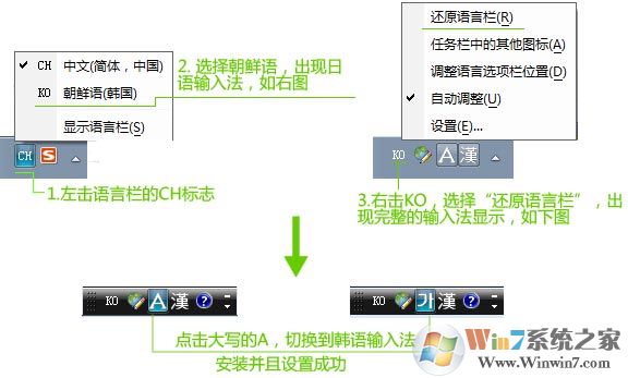 d、查看语言栏,是否可以正常切换到韩语输入法使用。