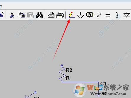 5、点击图中铅笔标识便可以绘制电路图线路。