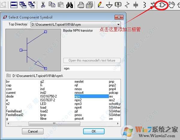 3、右上角还有三极管的标志,点击便可以添加三极管了。