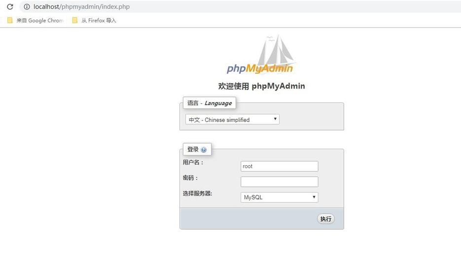 1、在服务器或电脑上安装好phpmyadmin后可在浏览器中直接输入访问网址打开web管理页面。