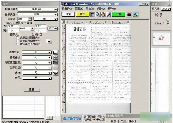 5. 拥护请注意选择SCANWIZARD 5软件中,左面“设置”窗口中的“图像类型”,请选择“RGB色彩”或者“灰阶”的类型,并注意扫描仪分辨率是300PPI。
