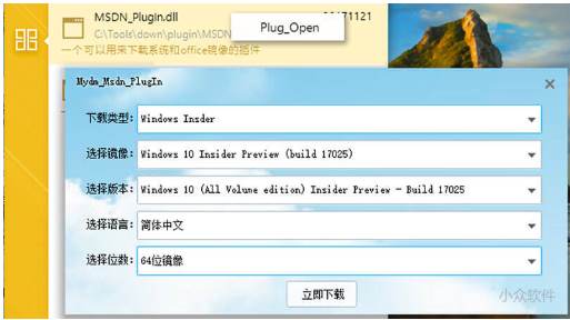 Mydm其本身只提供简单的下载功能,扩展功能由第三方插件提供,比如 MSDN 插件,就可以快速选择不同系统然后再使用 MYDM 下载。