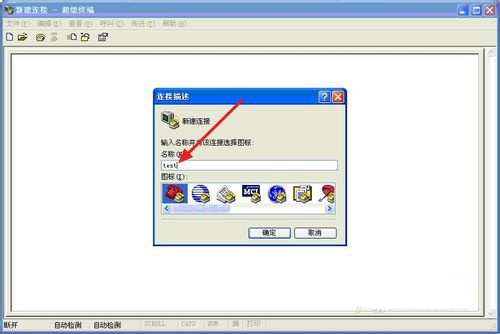 单击进入“超级终端”后如下图所示,红框中所示是要给超级终端命名的地方。