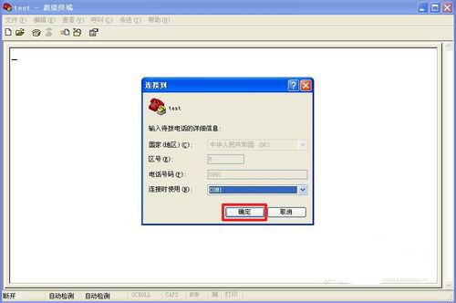 在“电话号码”中输入任意的数字即可,而在“连接时使用”中则需要选用相应的COM口,在此我们选择COM1口,如下图所示。