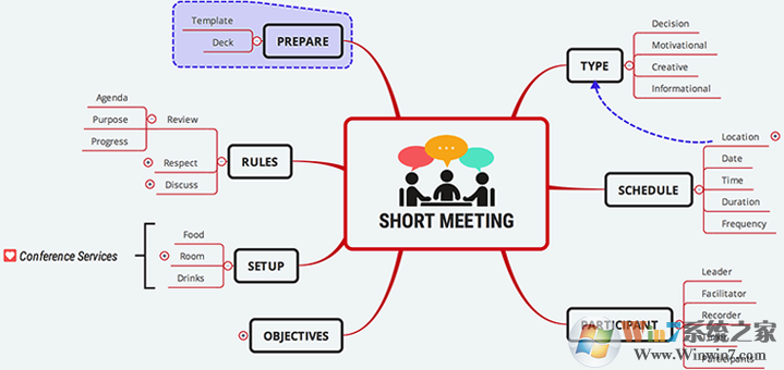 XMind中的思维导图结构包含一个中心根主题,和围绕中心主题辐射的众多主要分支。除了思维导图结构,XMind还提供组织结构图、树状图、逻辑图等,这些图表在各种情况下都扮演着很重要的角色。比如,组织结构图可以清楚地显示公司/部门/团队的结构,逻辑图在分类原因的时候非常有用,更重要的是,所有这些图表都可以在一个导图中使用!每一个分支,甚至每一个主题,都能拥有最合适的结构。可用性非常之大。