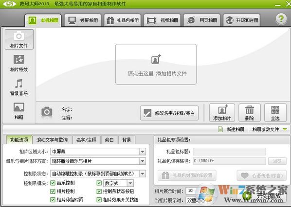 完成设置步骤后,返回软件的主界面点击“开始播放”按钮就能让相片在电脑上动感展现在你的面前了,效果如下图所示。如果你制作的是礼品包相册则可以导出一个精美的礼品包,轻松就能将它分发给别人一起分享你的制作成果。同时,制作视频相册的话,软件支持导出AVI/DVD/VCD/SVCD格式,导出的视频相册画面清晰播放流畅
