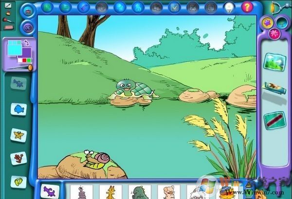 方便的倒色、克隆等工具可快速创作作品,变形工具可以让画面上的人和动物变得夸张有趣,增强小朋友的学习兴趣。