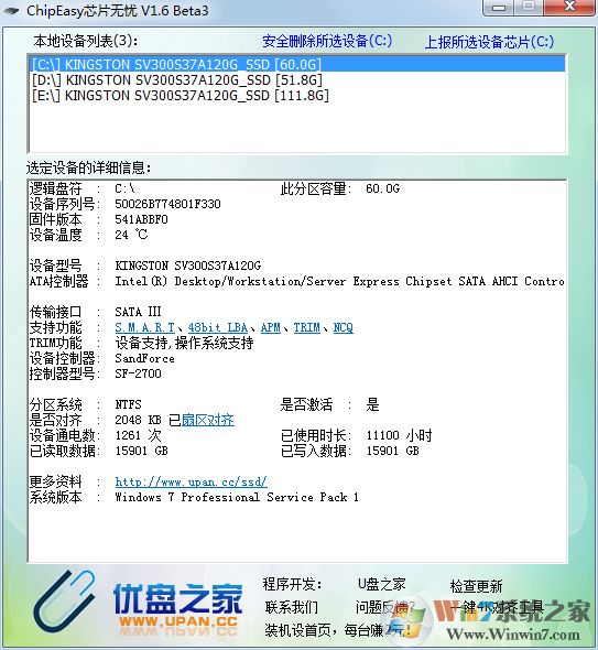 插入U盘,运行ChipEasy芯片无忧,会自动获取u盘相关信息