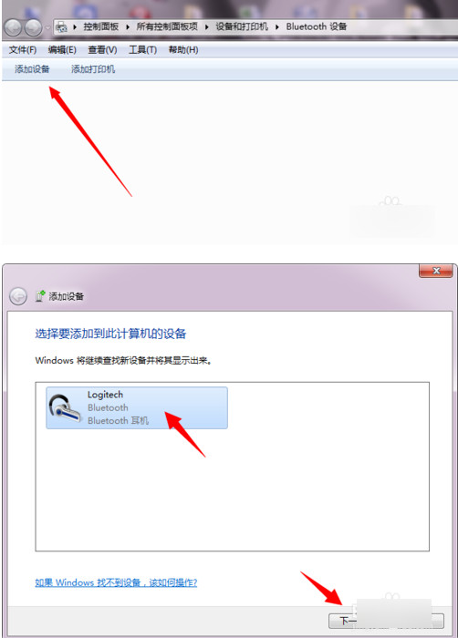 双击右下角的蓝牙图标,弹出添加设备的对话框,点击添加设备,搜索到蓝牙耳机,选中点击下一步,等系统自动安装完蓝牙服务。(如果搜索不到耳机,一般是和耳机没有调到配对状态有关,可以把耳机关掉,然后按住耳机开关8秒左右不要松手,一直到耳机指示杰出现快速闪烁或者红蓝交替闪烁的时候,再来搜索)