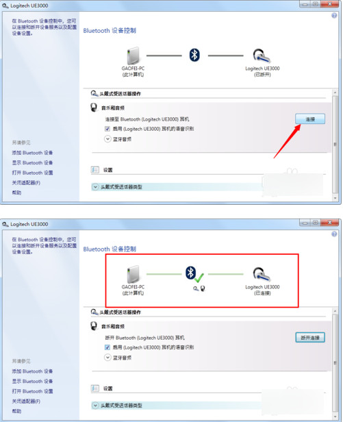 等服务全部安装完毕,系统会弹出一个控制的对话框,如果没有弹出可以在搜索到的耳机图标上面双击或者右键点击控制,点击连接,就可以了。