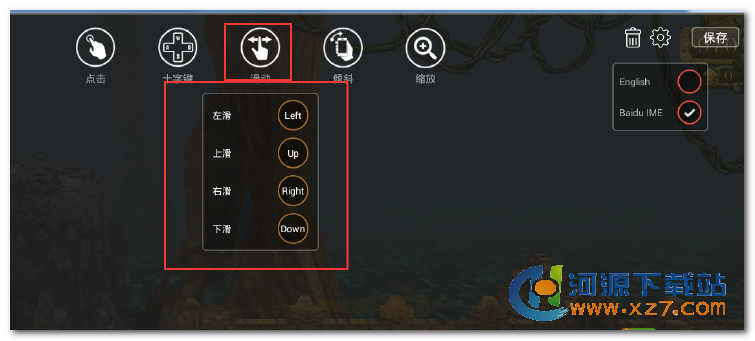 前面三个步骤与点击快捷键一样,然后选中滑动,按照习惯(一般是设置为键盘上的上下左右方向)。设置好后点击保存、已完成即可。