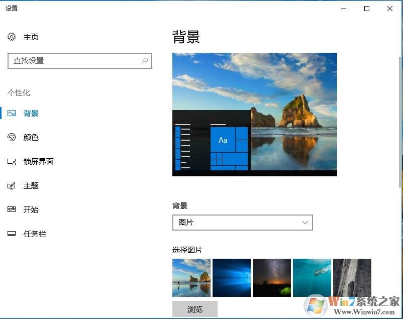 2、在选择图片处选择一张你喜欢的图片,即可设置为新的桌面壁纸,如果没有的话,可以浏览电脑中的图片。