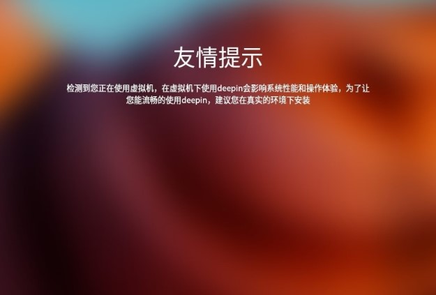 2.因为是在虚拟机中进行UOS的安装,会出现下面的提示,可以忽略进行【继续安装】