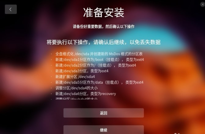 4.开始准备安装,确认硬盘的选择无误后点击【继续】开始安装。