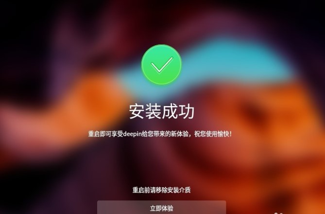 6.上面的步骤完成以后出现【安装成功】的提示画面。移除安装的介质或者ISO文件后,点击【立即体验】