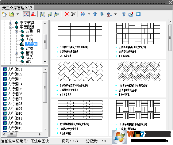 天正的图库系统采用图库组TKW文件格式,同时管理多个图库,通过分类明晰的树状目录使整个图库结构一目了然。类别区、名称区和图块预览区之间可随意调整最佳可视大小及相对位置,图块支持拖拽排序、批量改名、新入库自动以“图块长*图块宽”的格式命名等功能,最大程度地方便用户。