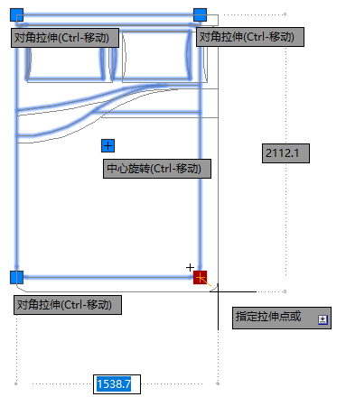 天正图块提供五个夹点,直接拖动夹点即可进行图块的对角缩放、旋转、移动等变化。图块通过 “图块屏蔽”特性可以遮挡背景对象而无需对背景对象进行裁剪,通过对象编辑可随时改变图块的精确尺寸与转角。