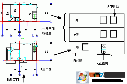 天正建筑随时可以从各层平面图获得三维信息,按楼层表组合,消隐生成立面图与剖面图,生成步骤得到简化,成图质量明显提高。