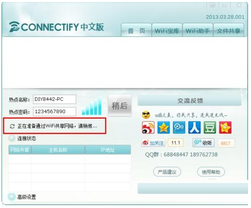 3、然后耐心等待Connectify中文版启动完成就可以了。
