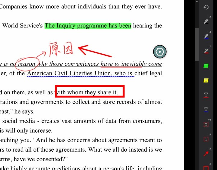 接下来是书写,点击工具,选择触控笔,设定粗细之后,可以直接在pdf上书写标记,实际书写感受非常接近于真实的笔,很流畅。