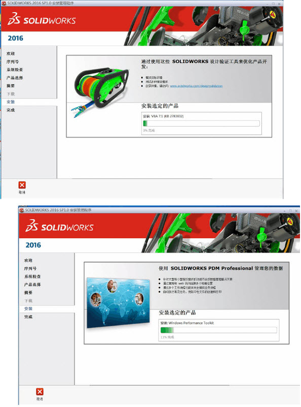 2. 打开:_SolidSQUAD_文件,双击注册文件:SolidWorksSerialNumbers2016 3. 打开:Solidworks_2016_SP1.0_Full_DVD1文件 点击:开始安装:出现以下欢迎界面: