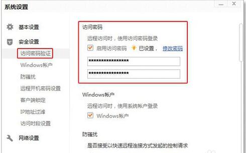 3、访问密码在向日葵界面的“设置”一栏可进行设置,如图。