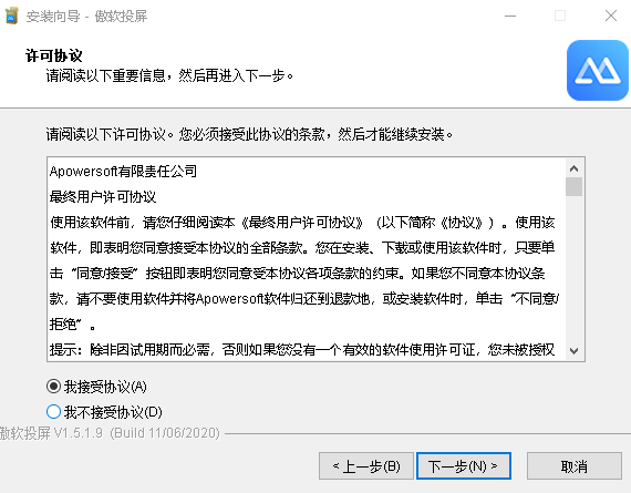 傲软投屏PC版安装说明: