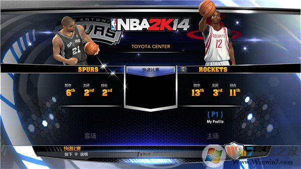 快速开赛:此模式下,玩家可以快速开始一场NBA比赛。可以任意选择球队,调换主客场以及球衣。