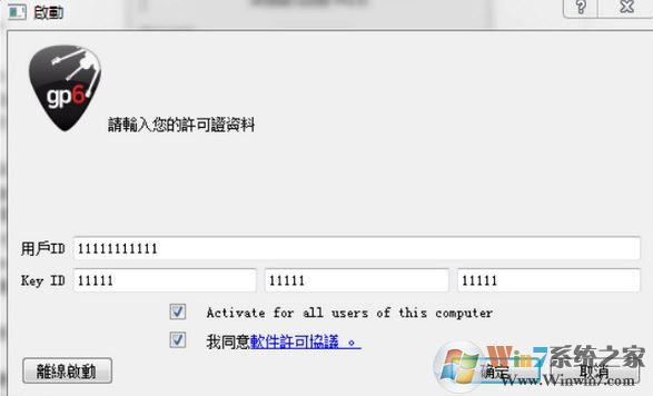 3、安装之后,会弹出许可证资料输入窗口,窗口左下角有“离线启动”按钮,但它是灰色不可选状态。在输入框中任意输入数字,只到该按钮可用为止;