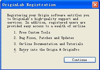 6.完成上述工作后,启动OriginPro 8,会弹出下述对话框,点击“Continue”继续。