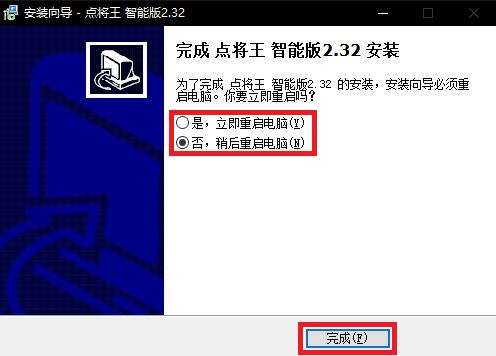 安装完成后,可选择是否立即重启电脑