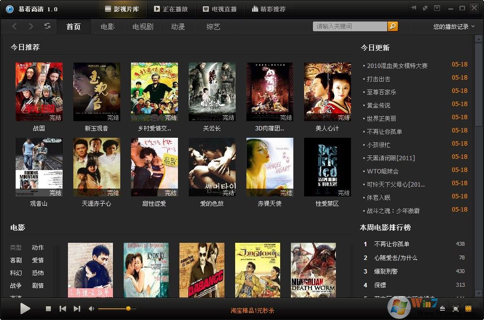易看高清播放器又名易看影音盒,是一款一站式视频播放器,软件基于互联网真正百万部的海量内容,高效智能的搜索技术,方便快捷的产品功能,极速稳定的数据传输技术;让你从想看到看,10秒完成,无需等待;并支持节目进度任意拖放,你可以从节目任意位置开始播放!