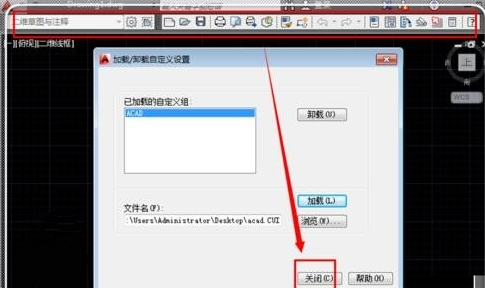 1、打开cad,点击出问题的“确定”按钮,然后在命令栏输入“CUILOAD”,然后点击回车