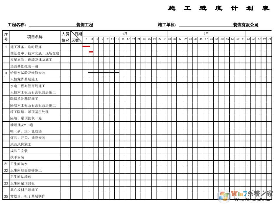 施工进度计划表格介绍