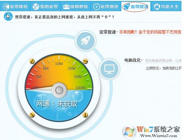 2、这时觉得网速不给力,就可以选择“宽带提速”进行操作