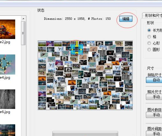 调整拼贴尺寸,照片大小,照片数量和照片间距