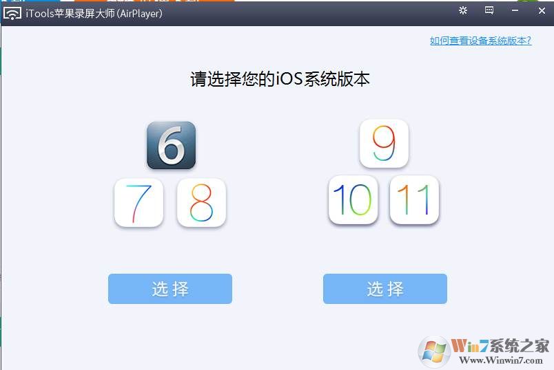 1、双击运行airplayer,无需安装哦,然后选择你苹果手机的IOS版本,现在大多是IOS 9 10 11了,具体可以去手机系统信息中查看;