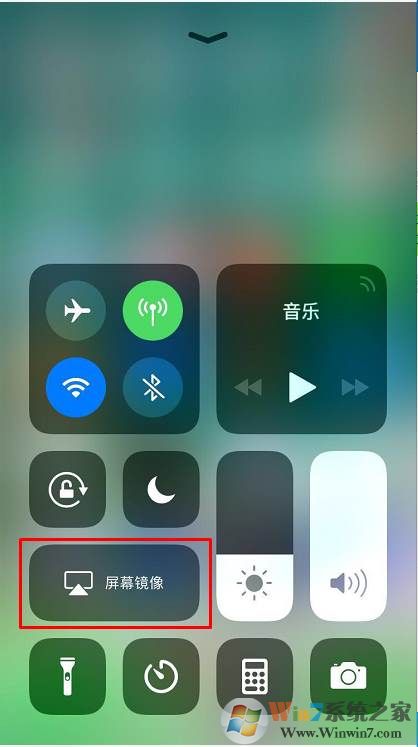 3、接下来在手机上操作,打开手机,从底部向上滑动,然后点击屏幕镜像;