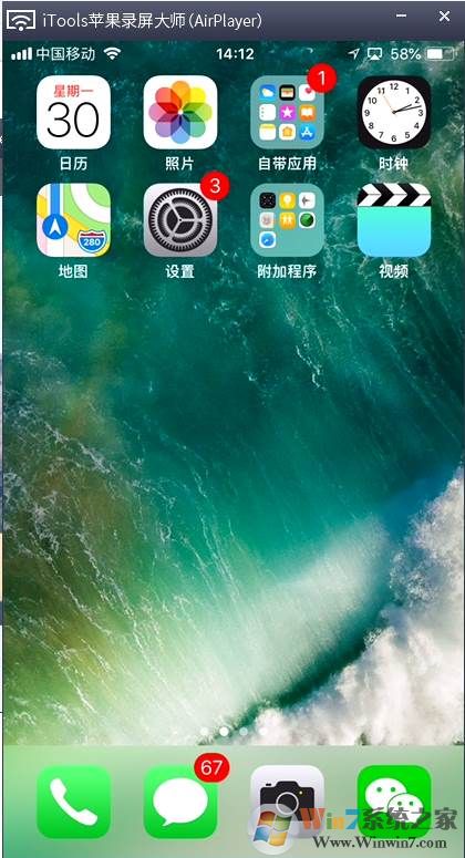 5、连接成功之后,你就可以发面airplayer上已经显示了你的手机上的内容了;