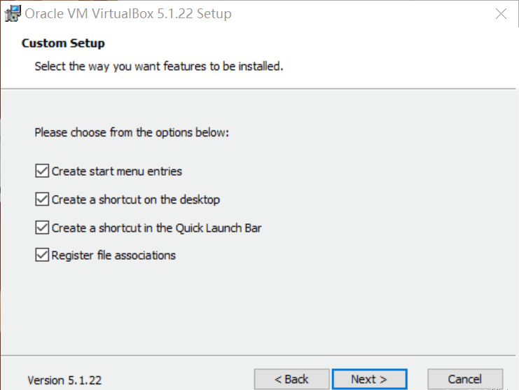 Custom Setup界面默认勾选上界面中的四个选项,点击“Next”。