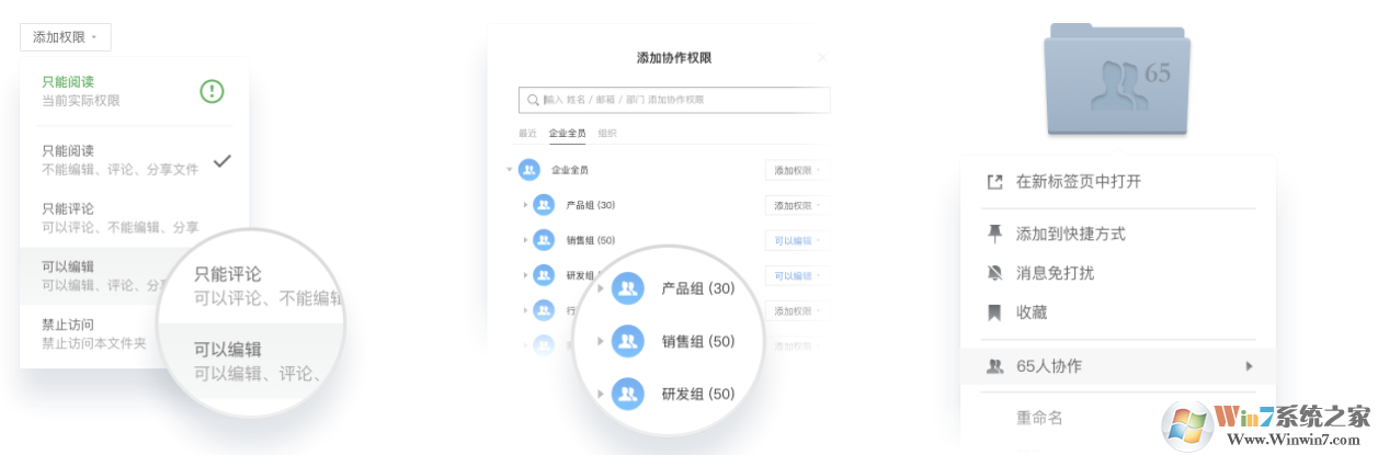 可通过组织架构,一键为团队空间添加企业成员,方便部门内及跨部门协作