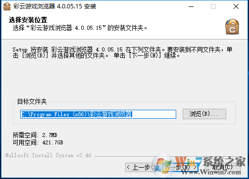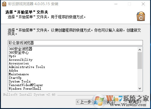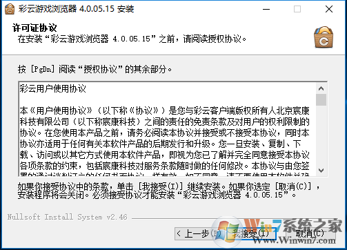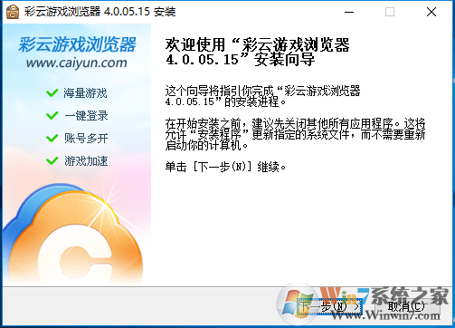 1、下载彩云游戏浏览器安装包,双击打开点击下一步