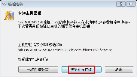 SSH安全警告选择“接受并保存”;