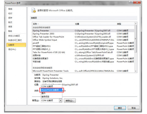 2、*.dll:这是用一些编程软件接入PPT中编译所生成的COM加载项。安装这个插件呢,laose提供的大都是bat文件进行注册。2010版本中手工安装方法如下: