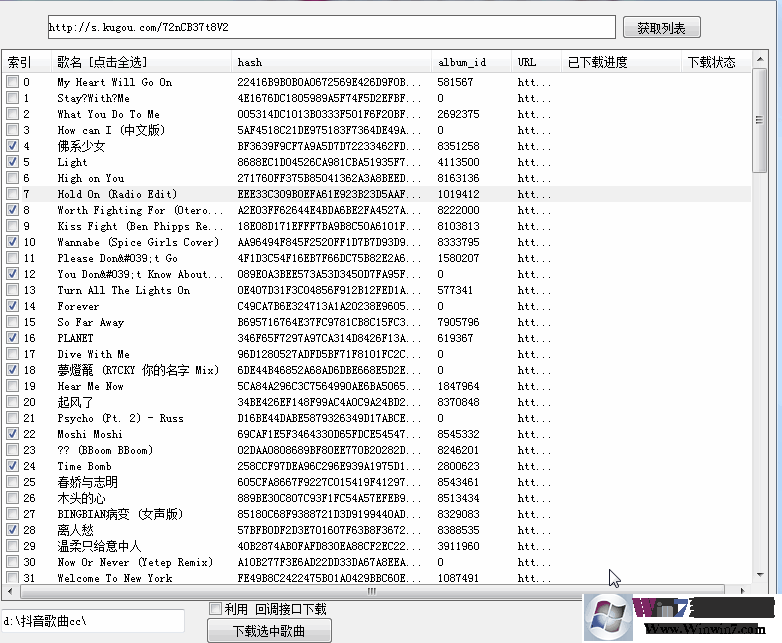 点击下载选中的歌曲即可