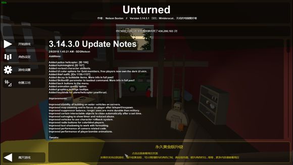 unturned汉化补丁是基于UnturnedV12.6 For 3.13.11.2”补丁基础上加以修改,汉化部分有物品名字和新手教程,支持简体和繁体,数字改成了阿拉伯数字,看起来更加方便。
