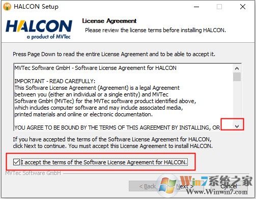 3、将许可协议界面拉到底部,勾选同意条款,点击next;