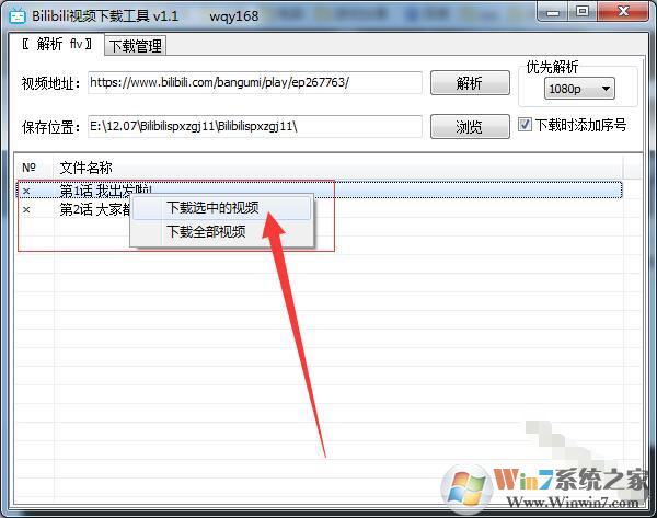 2、选择解析出来的视频,点击右键选择“下载选中的视频”或者“下载全部视频”